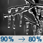 Temperature: 26°F Wind Speed: 5 to 12 mph Wind Direction: SE Forecast: Freezing rain. Cloudy, with a low around 26. Chance of precipitation is 90%. Little or no snow accumulation expected. New ice accumulation of less than half an inch possible. |