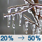 Temperature: 31°F Wind Speed: 3 to 7 mph Wind Direction: E Forecast: A chance of freezing rain after 7am. Mostly cloudy, with a high near 31. East wind 3 to 7 mph. Chance of precipitation is 50%. |