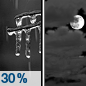 Temperature: 26°F Wind Speed: 6 mph Wind Direction: SSW Forecast: A chance of freezing rain before midnight. Mostly cloudy. Low around 26, with temperatures rising to around 28 overnight. South southwest wind around 6 mph. Chance of precipitation is 30%. Little or no ice accumulation expected. |