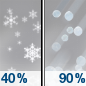 Temperature: 24°F Wind Speed: 5 to 12 mph Wind Direction: SE Forecast: Snow between 7am and 4pm, then snow and sleet. Mostly cloudy, with a high near 24. Southeast wind 5 to 12 mph, with gusts as high as 22 mph. Chance of precipitation is 90%. New snow accumulation of 1 to 3 inches possible. |