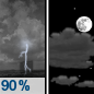 Temperature: 34°F Wind Speed: 10 mph Wind Direction: WSW Forecast: Showers and thunderstorms before midnight. Partly cloudy, with a low around 34. West southwest wind around 10 mph, with gusts as high as 25 mph. Chance of precipitation is 90%. |