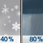 Temperature: 37°F Wind Speed: 9 to 14 mph Wind Direction: S Forecast: A slight chance of snow before 7am, then rain showers. Mostly cloudy, with a high near 37. Chance of precipitation is 80%. |