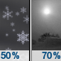 Temperature: 6°F Wind Speed: 7 mph Wind Direction: E Forecast: A slight chance of snow after midnight. Partly cloudy, with a low around 6. East wind around 7 mph. |