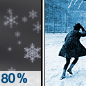 Temperature: 21°F Wind Speed: 6 to 10 mph Wind Direction: N Forecast: Snow. Cloudy, with a high near 21. North wind 6 to 10 mph. Chance of precipitation is 80%. New snow accumulation of 1 to 3 inches possible. |