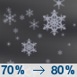 Temperature: 31°F Wind Speed: 14 mph Wind Direction: SSW Forecast: Snow likely before 8pm, then rain and snow likely between 8pm and 11pm, then rain and snow likely between 11pm and 5am, then rain and snow. Mostly cloudy, with a low around 31. South southwest wind around 14 mph, with gusts as high as 28 mph. Chance of precipitation is 80%. New snow accumulation of less than half an inch possible. |