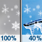 Temperature: 18°F Wind Speed: 5 mph Wind Direction: E Forecast: Snow likely before 7pm, then snow and freezing rain likely. Cloudy, with a low around 18. Chance of precipitation is 90%. |
