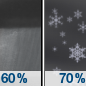 Temperature: 36°F Wind Speed: 7 mph Wind Direction: SE Forecast: Snow likely before 1pm, then a chance of rain and snow. Mostly cloudy, with a high near 36. Chance of precipitation is 60%. |