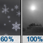 Temperature: 24°F Wind Speed: 17 to 23 mph Wind Direction: S Forecast: A chance of snow. Mostly cloudy, with a high near 24. South wind 17 to 23 mph, with gusts as high as 36 mph. Chance of precipitation is 50%. New snow accumulation of around one inch possible. |