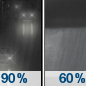 Temperature: 53°F Wind Speed: 0 to 5 mph Wind Direction: N Forecast: A chance of rain showers. Mostly cloudy, with a low around 53. |