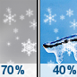 Temperature: 32°F Wind Speed: 8 mph Wind Direction: E Forecast: Snow likely before 1pm, then a slight chance of snow and a slight chance of freezing rain. Mostly cloudy, with a high near 32. East wind around 8 mph. Chance of precipitation is 70%. New snow accumulation of less than half an inch possible. |