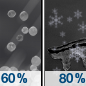 Temperature: 22°F Wind Speed: 3 to 12 mph Wind Direction: SE Forecast: Snow likely and sleet likely before 1am, then snow and sleet and freezing rain. Mostly cloudy, with a low around 22. Southeast wind 3 to 12 mph, with gusts as high as 24 mph. Chance of precipitation is 80%. |