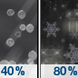Temperature: 36°F Wind Speed: 5 to 9 mph Wind Direction: W Forecast: Rain likely. Mostly cloudy, with a low around 36. Chance of precipitation is 60%. |