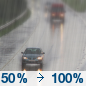 Temperature: 53°F Wind Speed: 7 to 14 mph Wind Direction: S Forecast: Rain after 7am. Mostly cloudy, with a high near 53. Chance of precipitation is 100%. New rainfall amounts between a half and three quarters of an inch possible. |