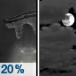 Temperature: 18°F Wind Speed: 6 mph Wind Direction: SSE Forecast: A slight chance of snow after 5am. Mostly cloudy, with a low around 18. South southeast wind around 6 mph. Chance of precipitation is 20%. |