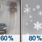 Temperature: 24°F Wind Speed: 6 to 10 mph Wind Direction: WNW Forecast: Rain and snow. Mostly cloudy. Low around 24, with temperatures rising to around 28 overnight. West northwest wind 6 to 10 mph. Chance of precipitation is 80%. New snow accumulation of less than half an inch possible. |