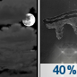 Temperature: 39°F Wind Speed: 1 mph Wind Direction: S Forecast: A chance of rain after 1am. Mostly cloudy, with a low around 39. Chance of precipitation is 30%. |