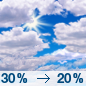 Temperature: 26°F Wind Speed: 3 to 7 mph Wind Direction: S Forecast: Mostly cloudy, with a low around 26. Chance of precipitation is 40%. |