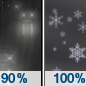 Temperature: 24°F Wind Speed: 14 mph Wind Direction: S Forecast: Rain before 4am, then a chance of snow between 4am and 5am, then a chance of rain. Cloudy. Low around 24, with temperatures rising to around 38 overnight. South wind around 14 mph, with gusts as high as 29 mph. Chance of precipitation is 100%. Little or no snow accumulation expected. Little or no ice accumulation expected. |