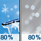 Temperature: 15°F Wind Speed: 17 to 22 mph Wind Direction: W Forecast: Snow likely before 7pm, then snow showers likely. Cloudy, with a low around 15. West wind 17 to 22 mph, with gusts as high as 38 mph. Chance of precipitation is 70%. |