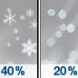 Temperature: 35°F Wind Speed: 6 mph Wind Direction: SSE Forecast: A chance of snow before 1pm, then a slight chance of sleet between 1pm and 2pm, then a slight chance of rain between 2pm and 3pm. Mostly cloudy, with a high near 35. South southeast wind around 6 mph. Chance of precipitation is 40%. New snow accumulation of less than half an inch possible. |