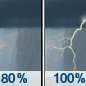 Temperature: 33°F Wind Speed: 5 to 15 mph Wind Direction: W Forecast: Showers and thunderstorms likely before 9pm. Partly cloudy, with a low around 33. West wind 5 to 15 mph, with gusts as high as 25 mph. Chance of precipitation is 70%. New rainfall amounts between a tenth and quarter of an inch possible. |
