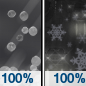Temperature: 35°F Wind Speed: 14 to 22 mph Wind Direction: E Forecast: Snow. Cloudy, with a high near 35. East wind 14 to 22 mph. Chance of precipitation is 100%. New snow accumulation of 7 to 11 inches possible. |