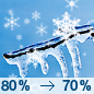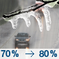 Temperature: 46°F Wind Speed: 5 to 10 mph Wind Direction: SW Forecast: Rain and a chance of freezing rain. Cloudy, with a high near 46. Chance of precipitation is 80%. |