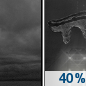 Temperature: 40°F Wind Speed: 5 to 10 mph Wind Direction: W Forecast: A slight chance of rain. Mostly cloudy, with a high near 40. |