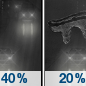 Temperature: 29°F Wind Speed: 5 to 10 mph Wind Direction: S Forecast: A chance of rain. Mostly cloudy, with a low around 29. Chance of precipitation is 40%. |