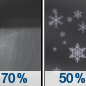 Temperature: 28°F Wind Speed: 7 mph Wind Direction: N Forecast: Rain showers likely before 1am, then a chance of snow showers. Mostly cloudy, with a low around 28. Chance of precipitation is 70%. |