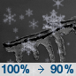 Temperature: 36°F Wind Speed: 5 mph Wind Direction: NE Forecast: A chance of freezing rain before 7am, then a slight chance of freezing drizzle between 7am and 10am, then a slight chance of snow between 10am and 1pm. Cloudy, with a high near 36. Chance of precipitation is 40%. Little or no ice accumulation expected. |