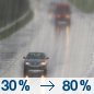 Temperature: 33°F Wind Speed: 12 to 15 mph Wind Direction: SW Forecast: A chance of rain before 1am, then a chance of rain and snow. Mostly cloudy, with a low around 33. Chance of precipitation is 30%. |