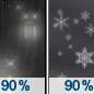 Temperature: 36°F Wind Speed: 7 to 10 mph Wind Direction: SW Forecast: A slight chance of snow. Mostly cloudy, with a high near 36. |