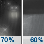 Temperature: 26°F Wind Speed: 3 to 8 mph Wind Direction: SW Forecast: Rain likely before 7pm, then rain showers likely. Mostly cloudy, with a low around 26. Chance of precipitation is 70%. |