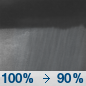 Temperature: 37°F Wind Speed: 8 mph Wind Direction: SW Forecast: Rain showers. Cloudy, with a low around 37. Chance of precipitation is 100%. |