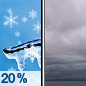 Temperature: 20°F Wind Speed: 12 to 16 mph Wind Direction: NW Forecast: A slight chance of snow before noon. Mostly cloudy, with a high near 20. Chance of precipitation is 20%. |