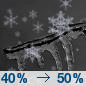 Temperature: 34°F Wind Speed: 3 to 7 mph Wind Direction: NNW Forecast: A slight chance of snow and a slight chance of freezing rain before noon. Cloudy, with a high near 34. Chance of precipitation is 20%. |