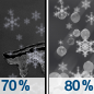 Temperature: 9°F Wind Speed: 22 mph Wind Direction: W Forecast: Snow likely before 7pm, then snow showers likely. Cloudy, with a low around 9. West wind around 22 mph. Chance of precipitation is 70%. |