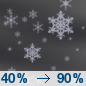 Temperature: 34°F Wind Speed: 10 mph Wind Direction: SW Forecast: Snow. Mostly cloudy, with a high near 34. Chance of precipitation is 80%. New snow accumulation of 1 to 3 inches possible. |