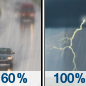 Temperature: 56°F Wind Speed: 7 to 13 mph Wind Direction: SW Forecast: Rain and a slight chance of thunderstorms. Cloudy, with a high near 56. Chance of precipitation is 80%. |