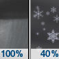 Temperature: 23°F Wind Speed: 13 to 18 mph Wind Direction: SW Forecast: Rain showers before 5am, then a slight chance of snow showers. Mostly cloudy. Low around 23, with temperatures rising to around 33 overnight. Southwest wind 13 to 18 mph, with gusts as high as 31 mph. Chance of precipitation is 100%. New rainfall amounts between a half and three quarters of an inch possible. |