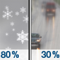 Temperature: 30°F Wind Speed: 2 to 8 mph Wind Direction: E Forecast: A chance of snow between 7am and 1pm, then snow and freezing rain. Cloudy, with a high near 30. Chance of precipitation is 80%. |