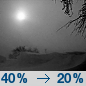 Temperature: 32°F Wind Speed: 10 mph Wind Direction: N Forecast: A slight chance of snow before 8am, then a slight chance of freezing rain between 8am and 11am, then a slight chance of snow between 11am and 5pm. Mostly cloudy, with a high near 32. North wind around 10 mph. Chance of precipitation is 20%. |