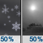 Temperature: 11°F Wind Speed: 12 to 18 mph Wind Direction: SE Forecast: A chance of snow before 2am, then a chance of snow and patchy blowing snow. Mostly cloudy. Low around 11, with temperatures rising to around 32 overnight. Southeast wind 12 to 18 mph, with gusts as high as 26 mph. Chance of precipitation is 50%. New snow accumulation of less than half an inch possible. |