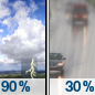 Temperature: 63°F Wind Speed: 9 to 16 mph Wind Direction: W Forecast: Showers and thunderstorms before 7am, then a chance of rain between 7am and 1pm. Partly sunny, with a high near 63. Chance of precipitation is 90%. New rainfall amounts between a quarter and half of an inch possible. |