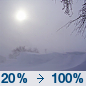 Temperature: -1°F Wind Speed: 7 mph Wind Direction: NE Forecast: A chance of snow. Mostly cloudy, with a low around -1. Northeast wind around 7 mph. Chance of precipitation is 30%. |
