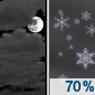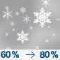 Temperature: 20°F Wind Speed: 5 to 16 mph Wind Direction: NW Forecast: Snow likely after 5am. Mostly cloudy, with a low around 20. Northwest wind 5 to 16 mph, with gusts as high as 24 mph. Chance of precipitation is 70%. New snow accumulation of less than half an inch possible. |