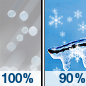 Temperature: 16°F Wind Speed: 8 to 12 mph Wind Direction: E Forecast: A chance of snow. Mostly cloudy, with a high near 16. East wind 8 to 12 mph. Chance of precipitation is 40%. New snow accumulation of less than half an inch possible. |