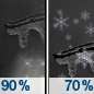 Temperature: 14°F Wind Speed: 12 to 15 mph Wind Direction: W Forecast: Snow showers likely. Mostly cloudy, with a low around 14. Chance of precipitation is 70%. |