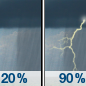 Temperature: 28°F Wind Speed: 15 mph Wind Direction: W Forecast: Showers and thunderstorms. Mostly cloudy, with a low around 28. West wind around 15 mph, with gusts as high as 30 mph. Chance of precipitation is 80%. |